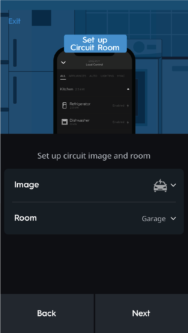 ![]() | 7 | Choose circuit image and room and tap Next. |