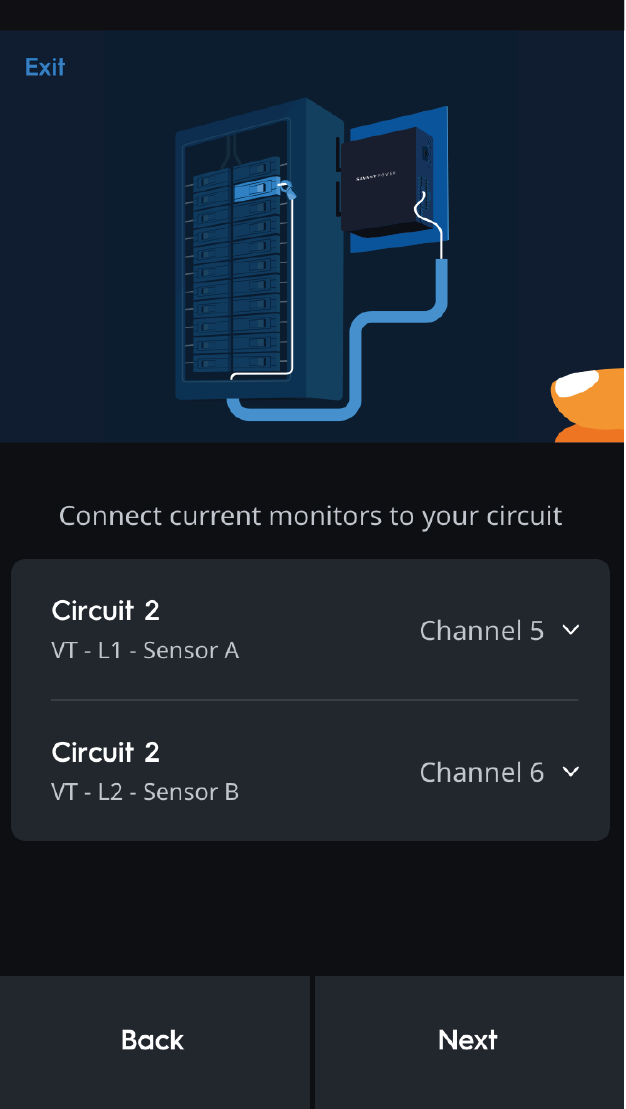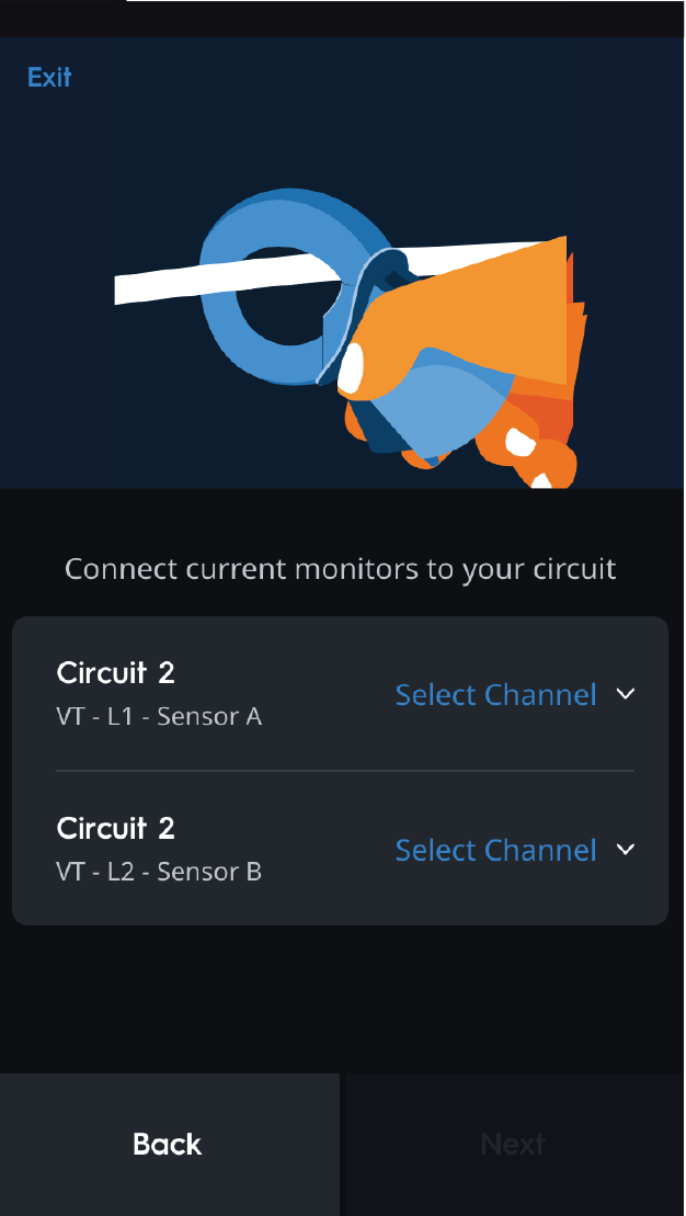 After naming and grouping the energy monitor, the following prompts will automatically appear to guide the installer through configuring channels.